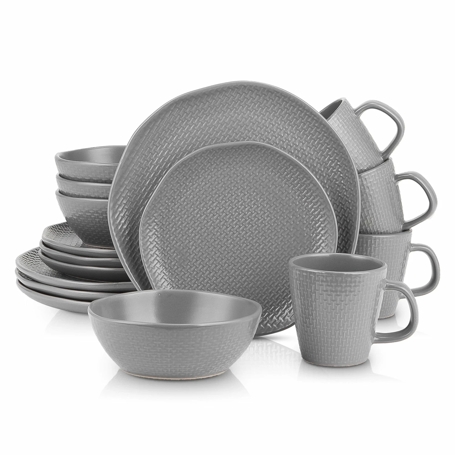 These stoneware tableware settings have an embossed weave design. These home essentials are expertly crafted and artfully designed. 100% dishwasher and microwave safe for easy cleaning and durability. The hip, trendy design and organic shape pairs exquisitely with both formal and casual cutlery, as well as with your favorite glassware and tablecloths. This collection creates unforgettable experience to make every occasion memorable. Thank you for choosing Stone Lain, where dishes come true.