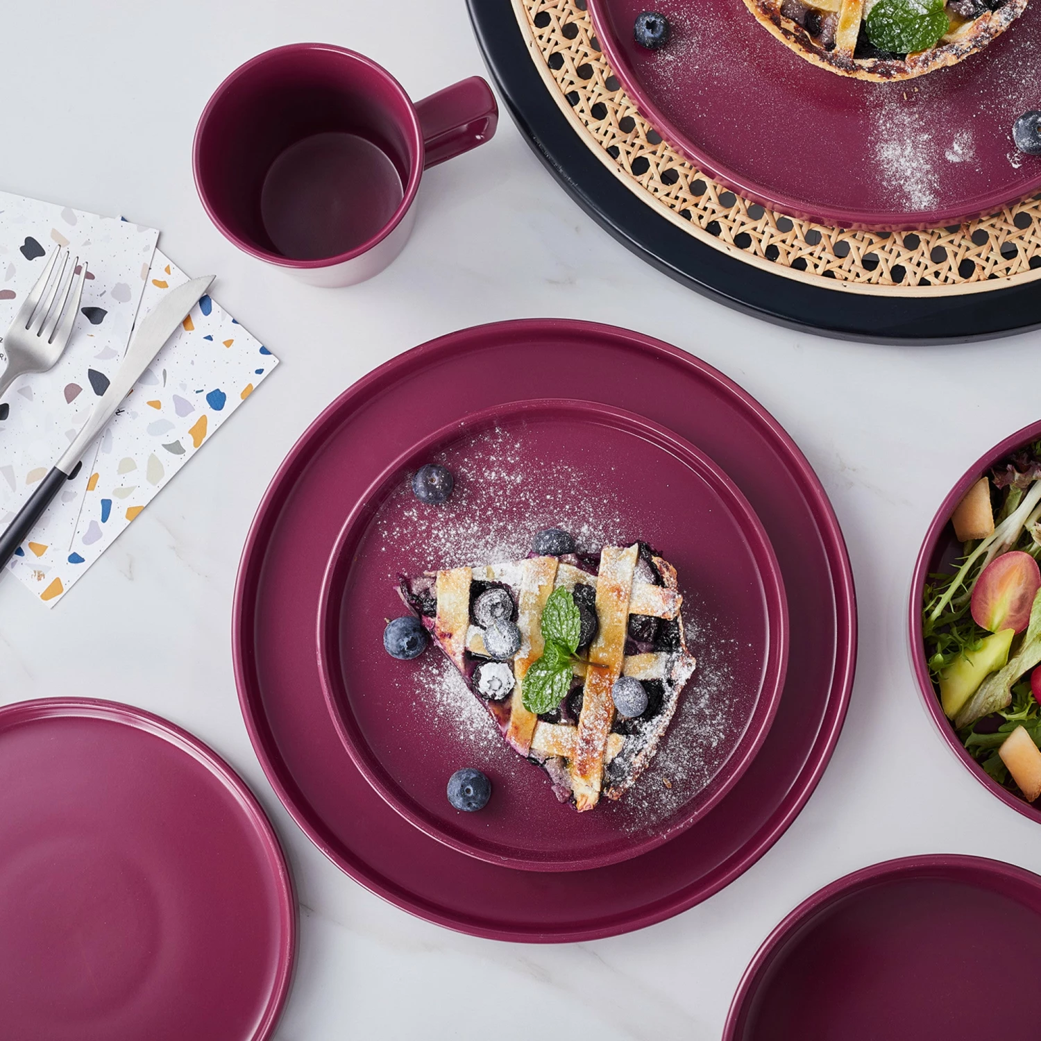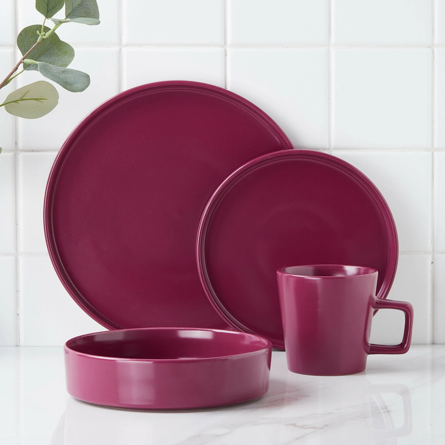 SKU: 7674581844186 Category: Stoneware Tags: Casual, Cleo, Dinnerware Set, group=CleoDinnerware Set, Magenta, Modern, Stoneware