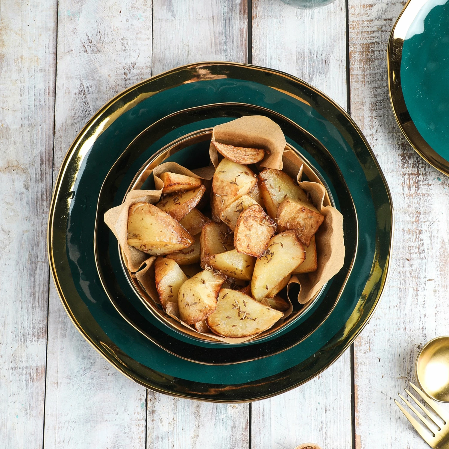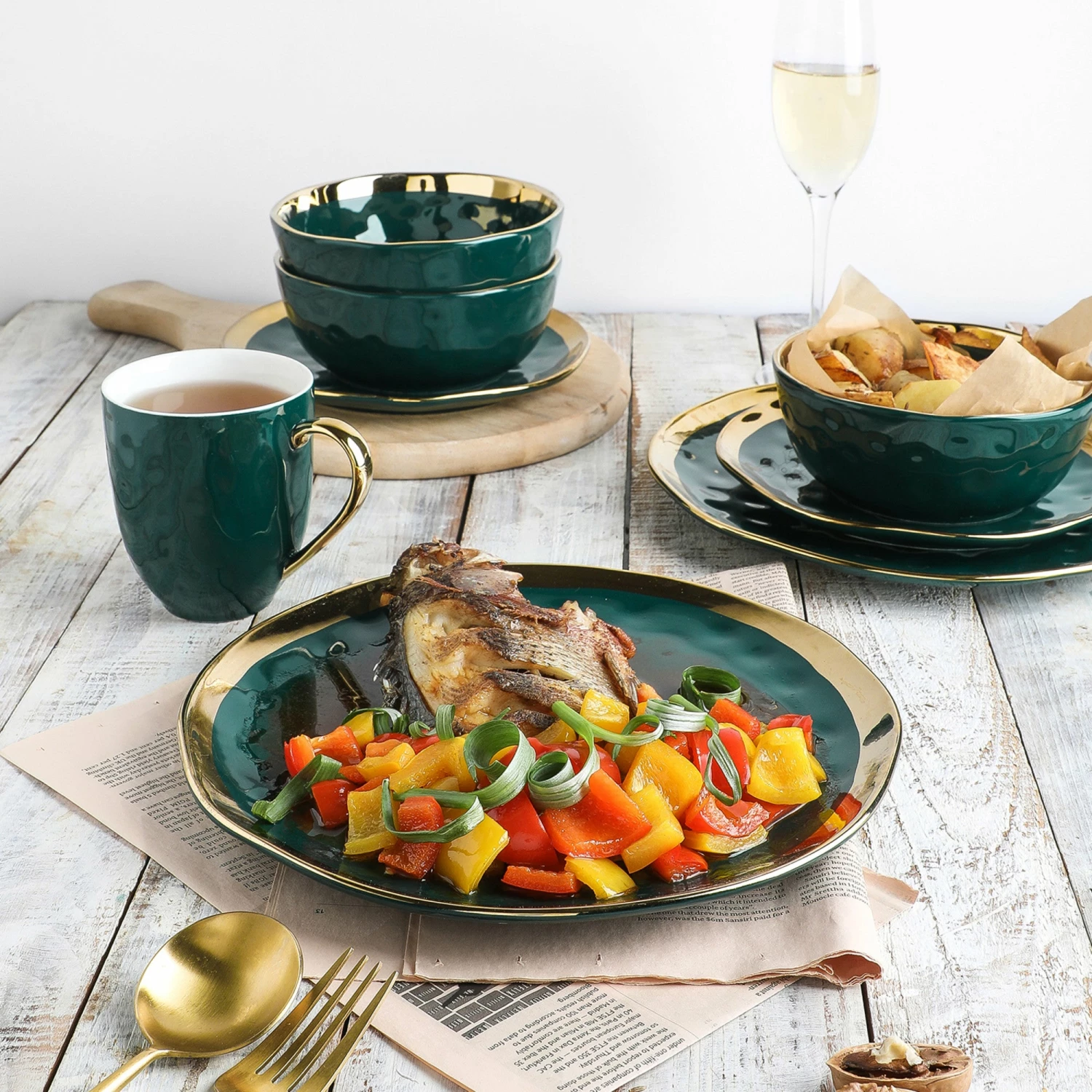 The Florian porcelain dinnerware set is perfect for those wanting a glam vibe in their kitchen or home. This Stone Lain porcelain round dish set features a gold accent. The dishes are perfect for anyone who wants to feel sleek, sophisticated, or even edgy and will work nicely for both formal and casual dining. This round set includes large round dinner plates, classy round salad plates, deep round bowls and rounded 12 oz. mugs. Pair this set with your favorite cutlery and cups and you are ready to plate your food for a fun dining experience. Florian is dishwasher safe for easy cleaning. Grab a set today and experience elegant dining at home.