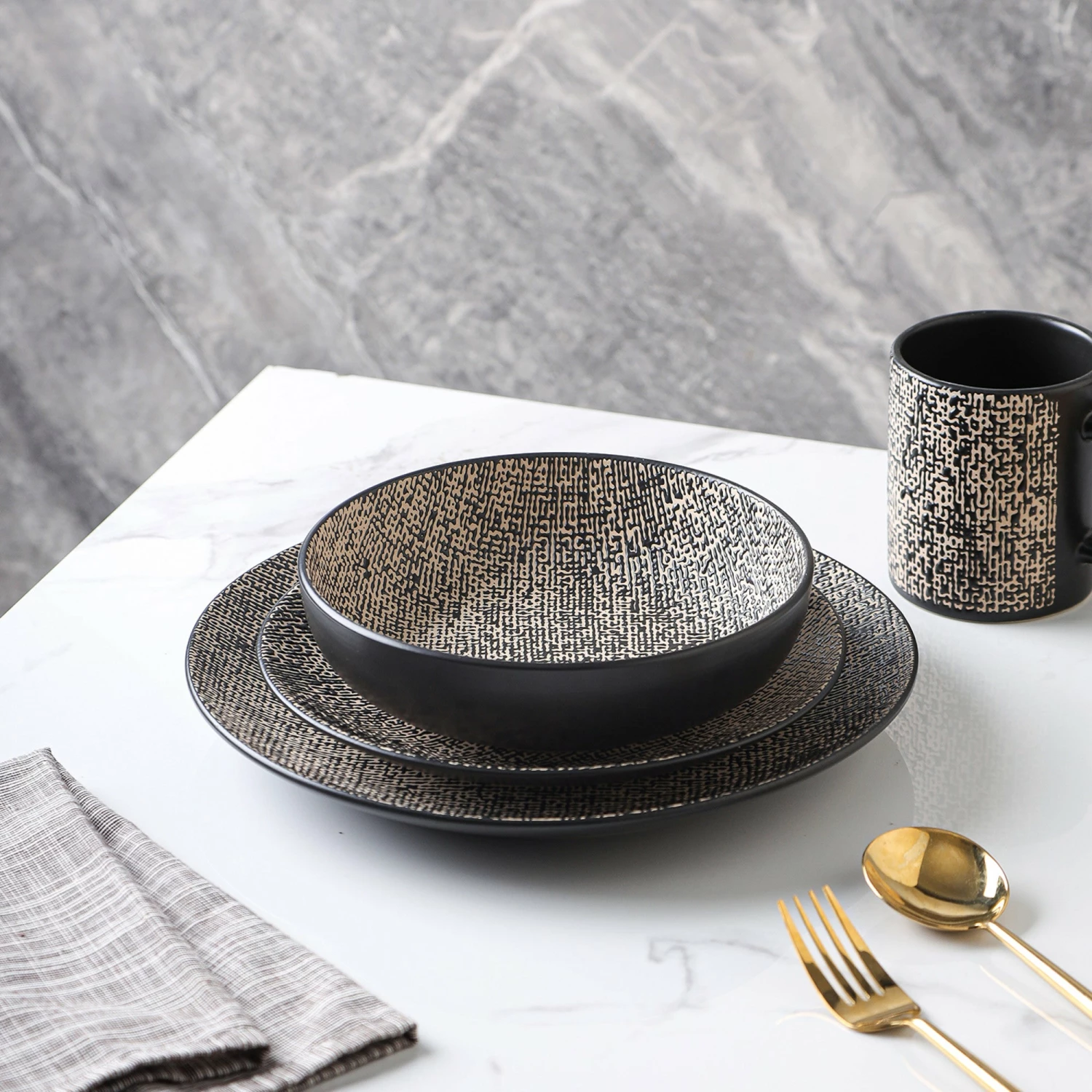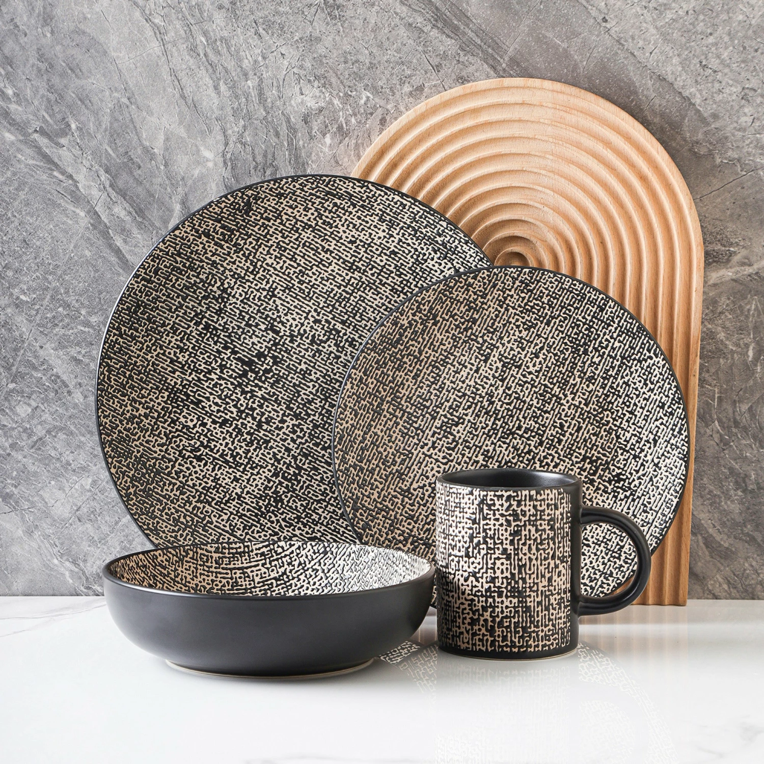 SKU: 7477863350490 Category: Stoneware Tags: Brown and Black, Dinnerware Set, group=SophieDinnerware Set, Sophie, Stoneware