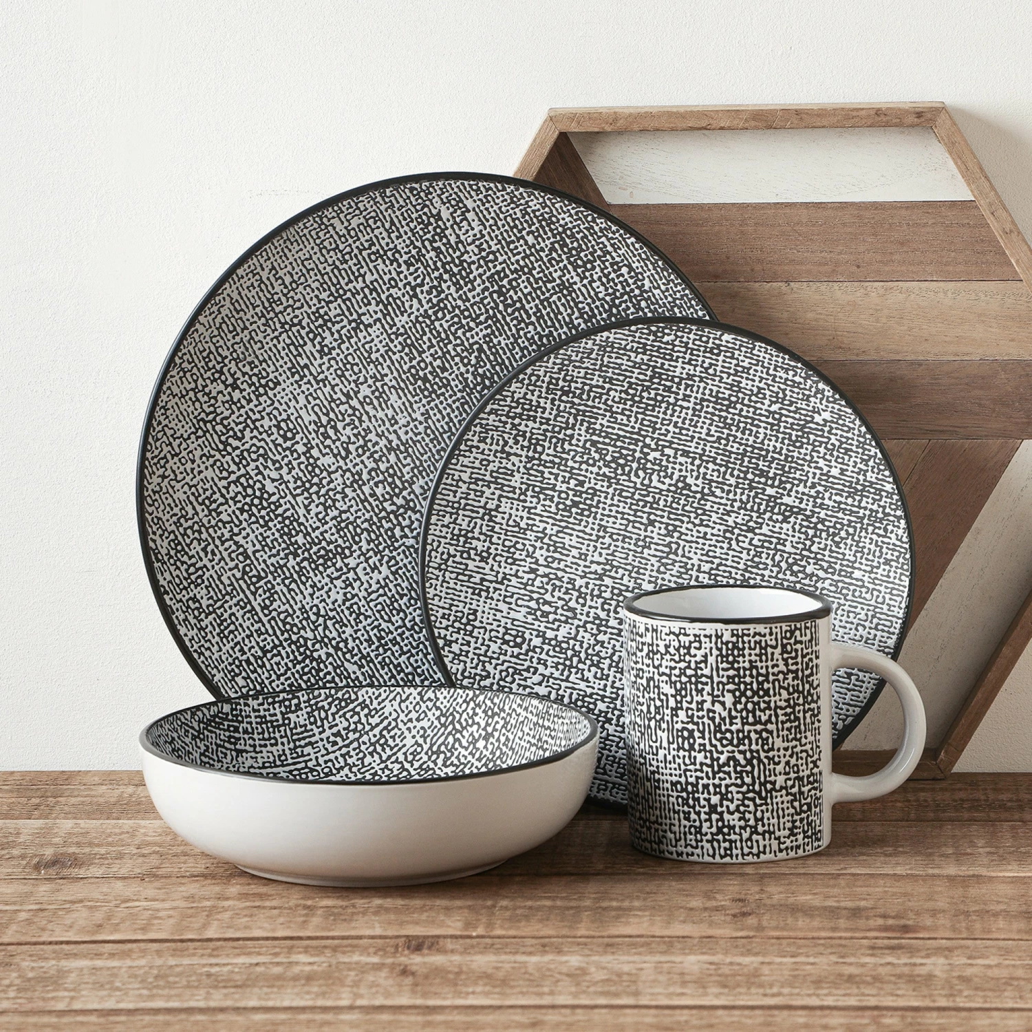 Brand new ⌛ Stone Lain Sophie Stoneware Dinnerware Set – White And Black ⌛
