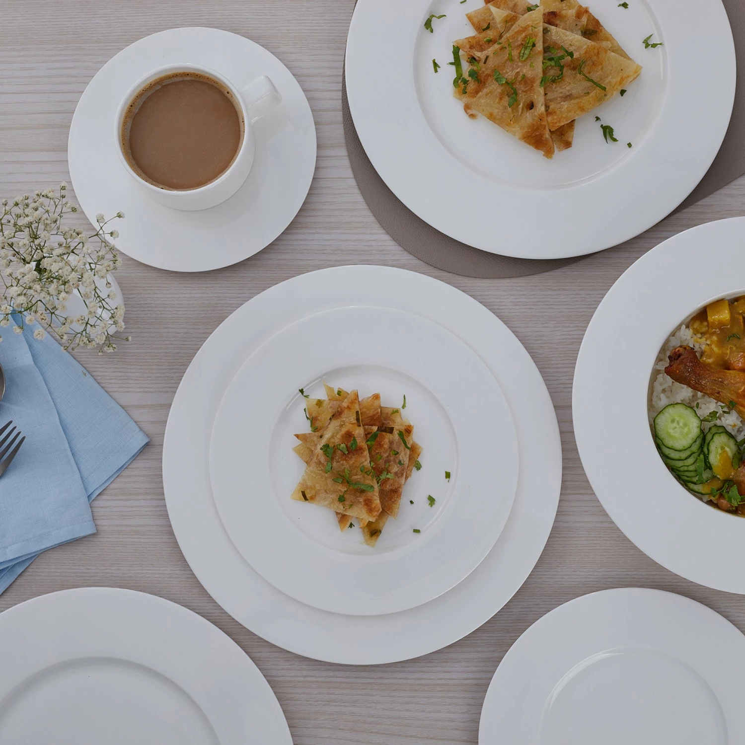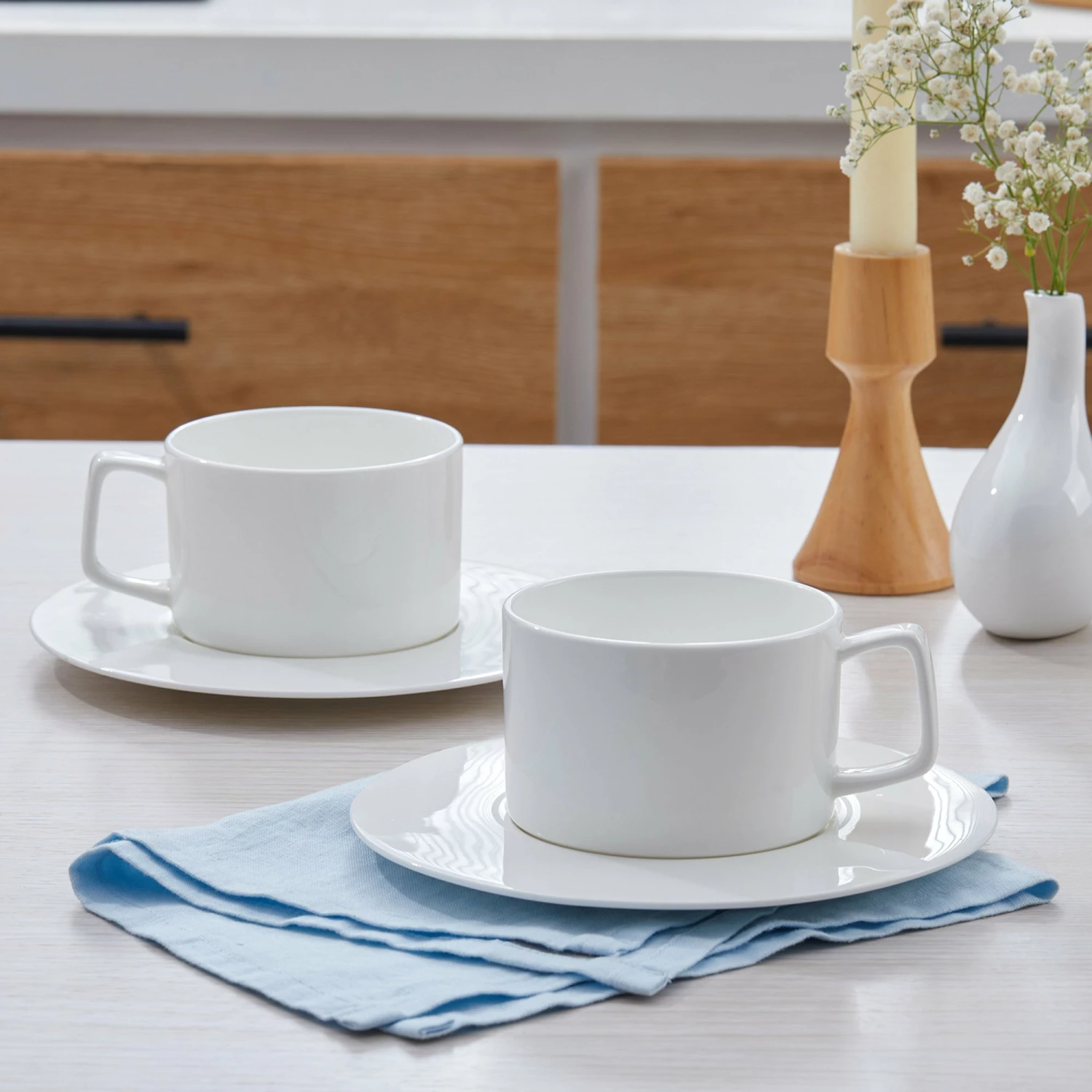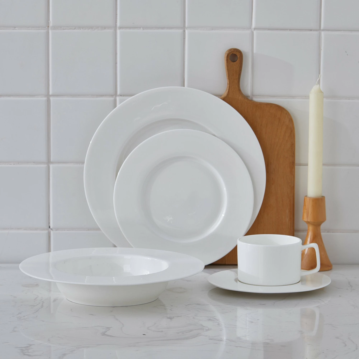 Durability meets classic style in the Stone + Lain Sylvie Dinnerware Set. Crafted from fine, bone china, these pieces are both microwave and dishwasher safe and the perfect addition to just about any dinner table. Featuring wide rimmed plates and bowls and angular mug handles, Sylvie brings style and sophistication to any meal. This set includes dinner plates, salad plates, mugs, saucers and bowls.