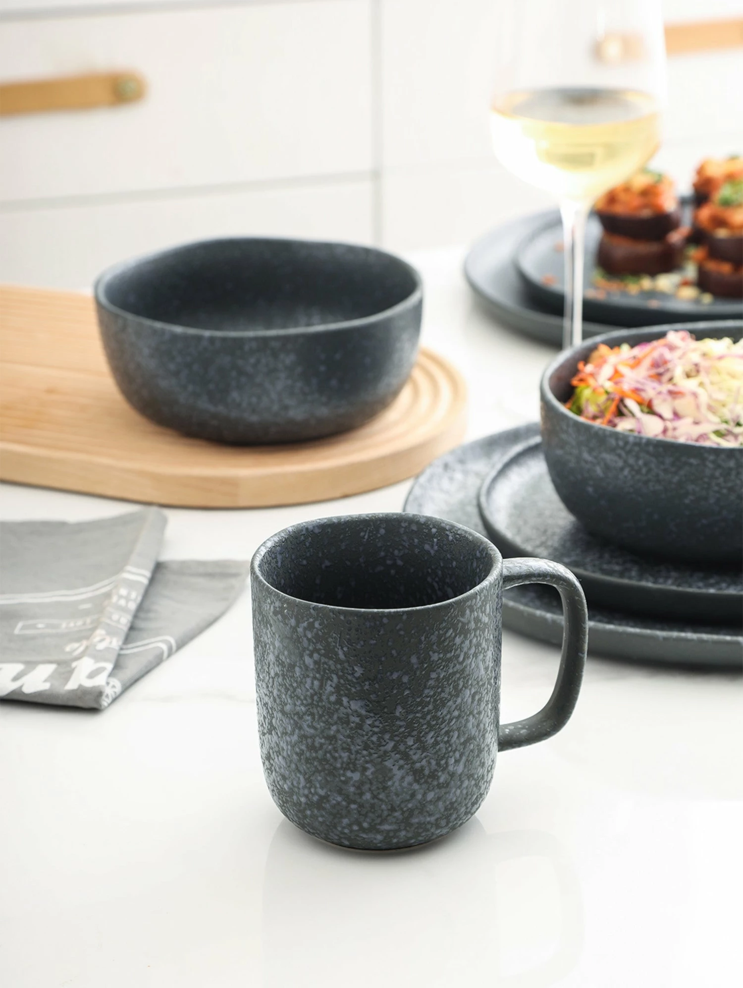 The Tom stoneware dinnerware set is rustic and unique with a stunning wave-like edge and reactive glaze, making each dish perfectly imperfect. The Stone Lain Tom stoneware set includes dishes created from a reactive glaze process, making it casual enough for every day dining and a great pair to comfort food. The dishes are all unique, as no two are exactly alike, and they fit into any traditional, farmhouse, or modern home or apartment. The collection includes large round 10.5โ dinner plates, round 8.25โ salad plates, soup or pasta bowls and cozy cups. Pair this set with your favorite cutlery and napkins, and you are ready to plate your food for a comforting and casual dining experience. Tom is microwave and dishwasher safe, for easy reheating and cleaning. Grab a set today and experience fun dining at home.